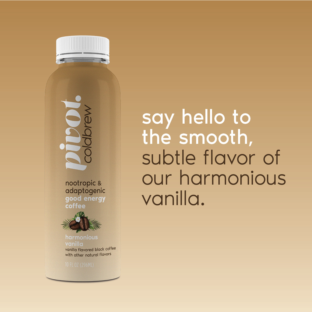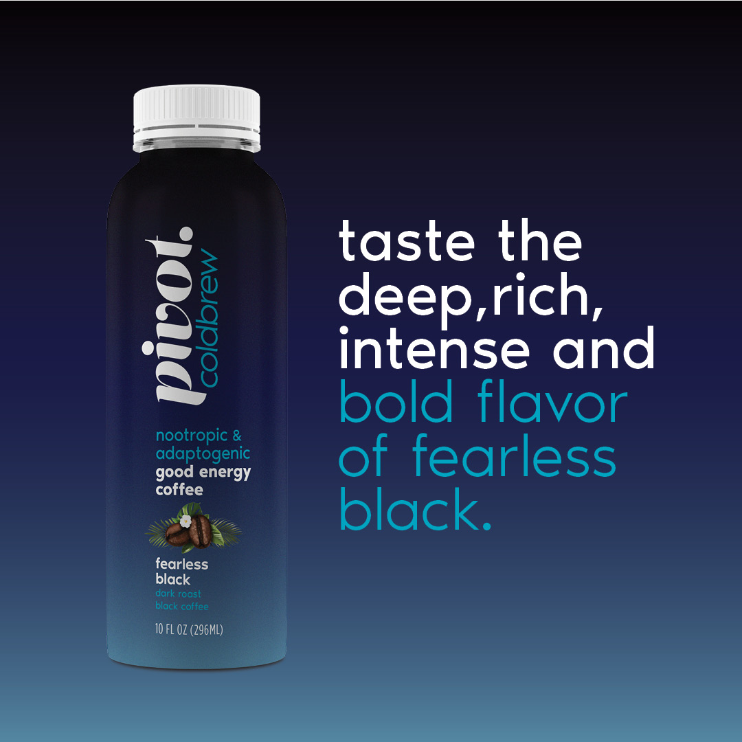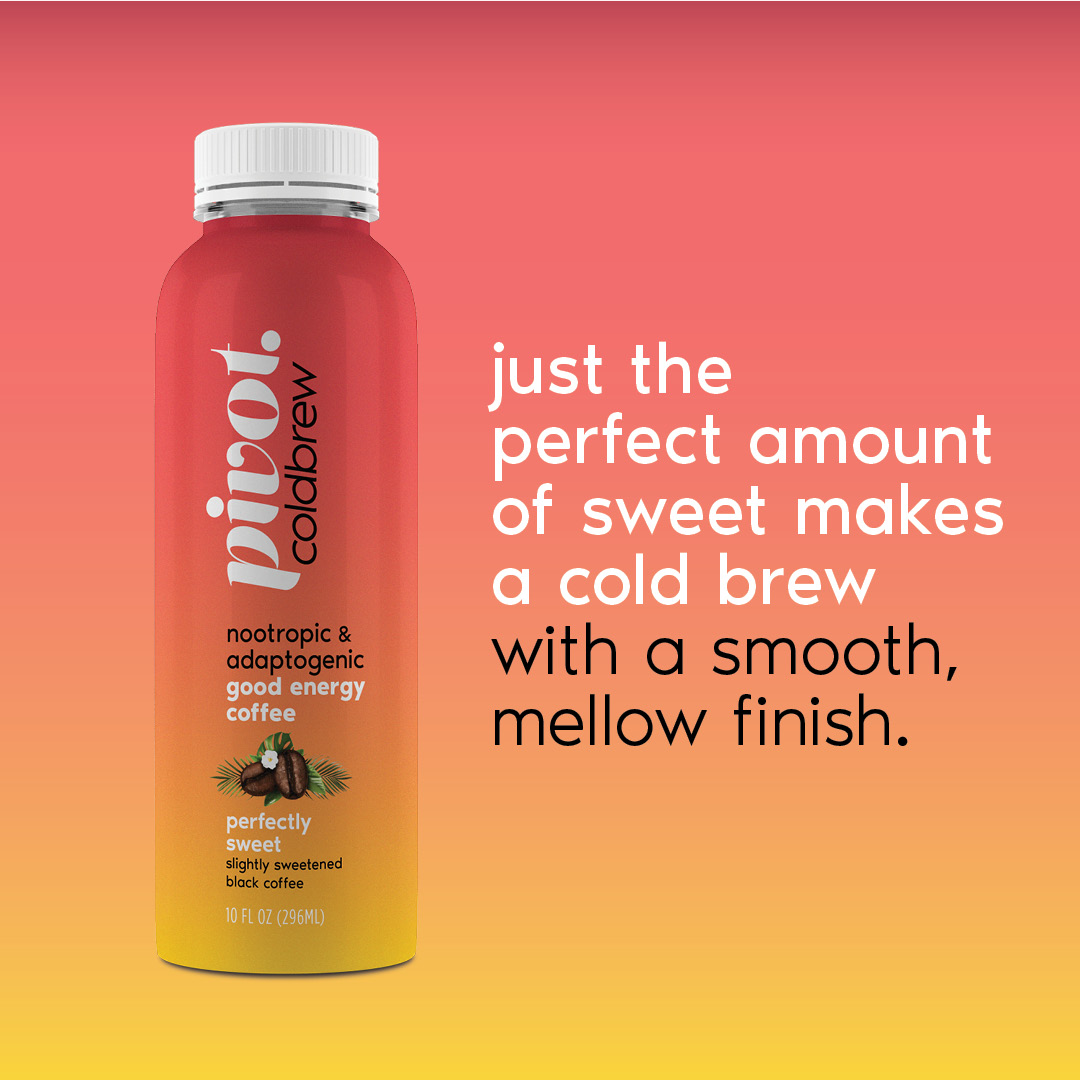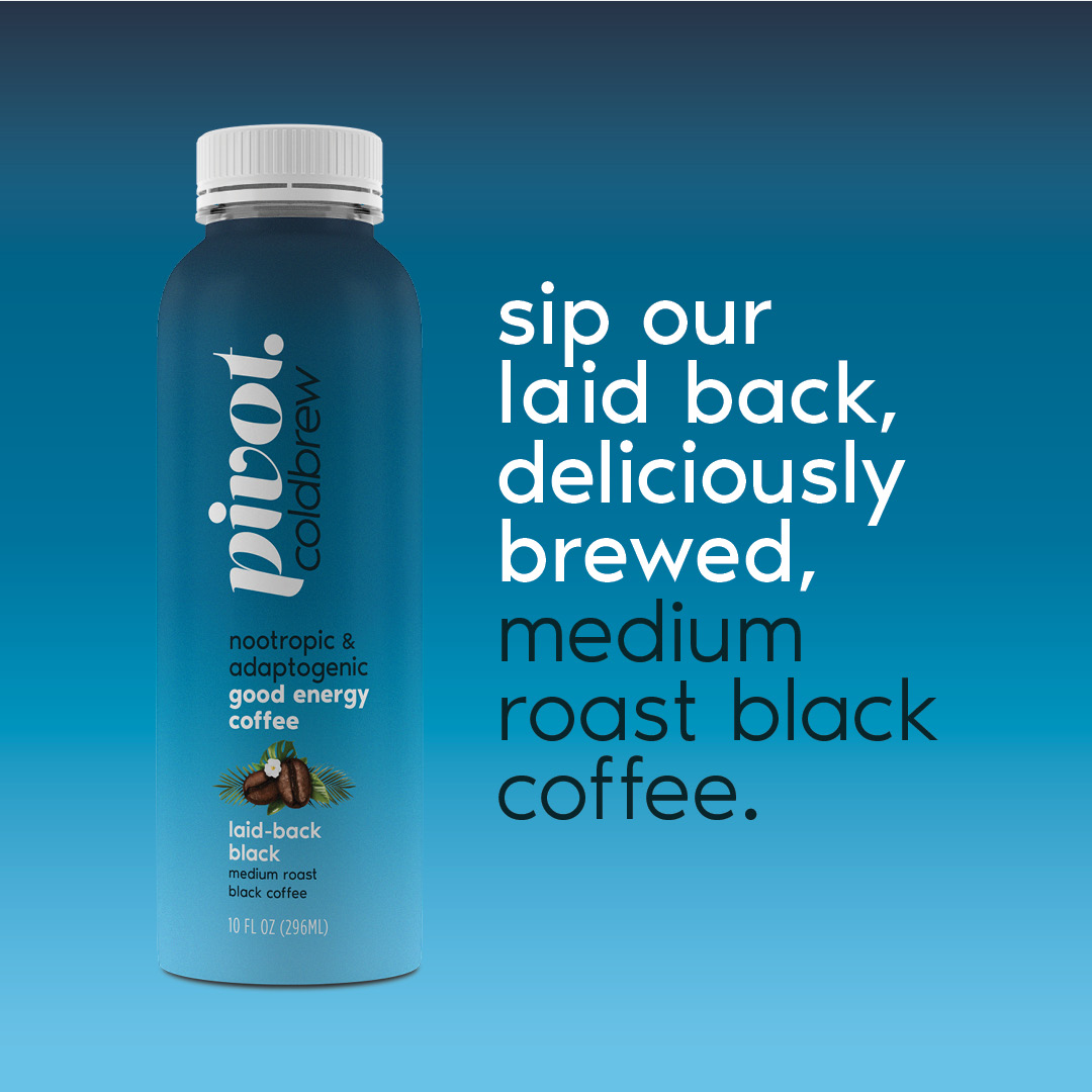 Pivot Coldbrew is more than just coffee. It’s the world’s first premium, single-source, arabica coffee, infused with a custom-formulated adaptogenic and nootropic energy stack that works in perfect harmony with caffeine. The result is a delicious, completely revolutionary cold brew that delivers a more sustained energy, and promotes calm focus and clarity, while cushioning the dreaded post-caffeine crash.